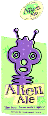 “I saw this section of the store with homebrewing ingredients and equipment. It reminded us of how our parents and grandparents used to make their own beer, and it seemed like a great idea,” Michael recalls. After brewing a batch or two and really liking the results, Michael and Sheila decided they should put some effort into labeling the fruits of their labor. “You know, if somebody gave me $25 and told me I had to buy either beer or brewing ingredients, I would buy the ingredients. It’s a matter of pride – creating something you enjoy from basic ingredients. After putting that kind of effort into the creation of the brew, you should not leave it unnamed. It’s an ego thing, doing your own labels. But it’s a lot of fun, too,” he says. Once he made the decision to pursue labels, he did the next most logical thing: He got hold of a professional graphic artist. That artist happens to be his daughter, Nicole, attending Massachusetts College of Art. “Dad had already asked me to help him design labels when the BYO contest was announced. The contest put us in high gear, and we started brainstorming names and design ideas,” Nicole says. The second place winner in the “Slick” category, “Alien Ale,” was the result of one of those late-night brainstorming sessions. Nicole put it together using a Macintosh computer running Adobe Illustrator. By the way, “Usquepoagh” is not a made-up name. Michael and Sheila live there. It’s in Rhode Island, though. Hey, but who’s to say there isn’t an Usquepoagh, Mars, too?