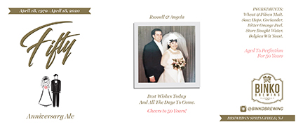 Right near the beginning of COVID, my parents were about to celebrate their 50th anniversary, and I wanted to do something special for them. We were originally going to have a party and I was going to bring their bespoke brew . . . but like everything else then, we had to cancel. But I now had plenty of extra time at home, so I wasn’t going to let the pandemic stop them from getting an anniversary beer!