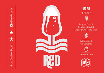 The U.K. football (y’know, soccer . . .) team I follow is Nottingham Forest, and their logo is a tree. Looking at their logo, I began thinking that it would be really cool if I could take the top of the tree, which kind of looks like beer foam, and make a hybrid beer glass image with the top of the tree as the foamy head. And the team’s nickname is The Reds . . . so it was pretty obvious that this would be a red ale. It all came together pretty quickly.