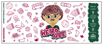 A recent highlight was Weird Ale, which was an opportunity to design a label with a couple of big fans of “Weird Al” Yankovic: My daughters. It was a truly awesome experience, start to finish. They’re the ones who came up with an initial drawing of Al, then we collaborated on the other label elements that refer to some of his hit songs, and I put it all together. The beer was a small-batch hoppy, red IPA.