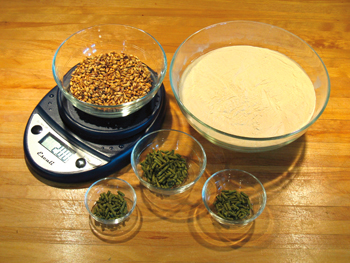 For this recipe you will be collecting 2.5 gal. of wort to the fermenter. For all-grain brewers, mix all grains with 1 gal. water in a stockpot and place on a stove, slowly raising the temperature to 148º F. Partial mashers can use a large saucepan or pot to mix grains with 0.5 gal. water and raise to the same temperature. Extract-recipe users should place crystal malt in a mesh bag, or just pour directly into 3 gal. water on the stove, and slowly raise the temperature to boiling. Just before boiling, remove the grain bag or, if not using a bag, pour through a wire strainer into a second pot and bring to a boil.