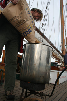 The total wort boil time is 90 minutes, which helps reduce the S-methyl methionine (SMM) present in the lightly kilned Pilsner malt and results in less DMS (dimethyl sulfide) in the finished beer. Add the bittering hops with 60 minutes remaining in the boil. Add Irish moss or other kettle finings and the last hop addition with 15 minutes left in the boil. Chill the wort rapidly to 62 °F (17 °C), let the break material settle, rack to the fermenter, pitch the yeast and aerate thoroughly.