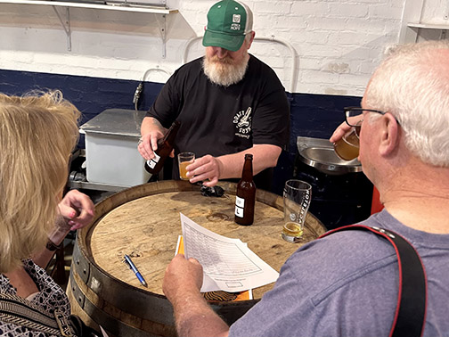 On the afternoon of the meetup, tables were set up in the brewery area of Shackleton Brewing Company in Cape Town and the arriving American homebrewers were given informal scoring sheets so they could rate the different homebrews as they began to taste beers made with South African hops, many for the first time. There were over 20 lagers, pale ales, and IPAs to sample as the two groups of homebrewers quickly started sharing brewing tips and smiles with each other in between sips. As the entire group sampled these beers they noticed the different range of aromas and flavors from hop varieties most had no prior experience with before in the glass.