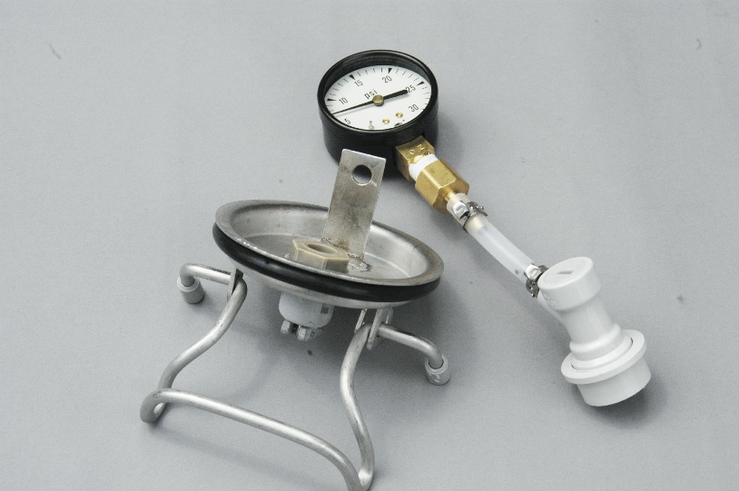 To create such a device is both simple and inexpensive. All that is required is a spare gas-in connector (ball-lock or pin-lock depending on your keg,) a piece of hose, two clamps and a pressure gauge in the desired pressure range.