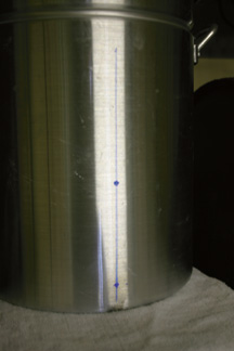 Make one mark on the line about 1.5 in. (3.8 cm) up from the bottom of the kettle and another about 7 in. (18 cm) or higher from the bottom (Fig. 2).