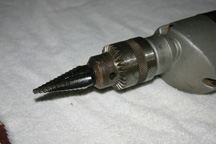 Use the step drill to widen the pilot holes to their appropriate sizes.